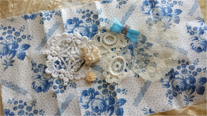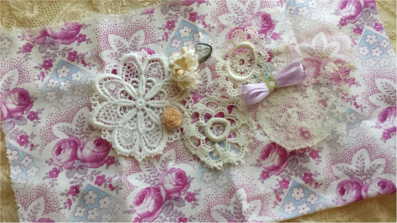 アンティークレースはぎれ・シルクリボン・布花・薔薇ボタン