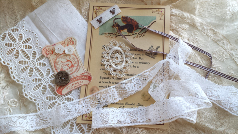*リスの素材セット(リスボタン、お花ボタン、アンティークレースetc)