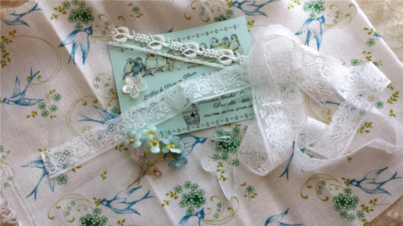 小鳥モチーフレース4カット約10㎝・フレンチレース約95㎝
