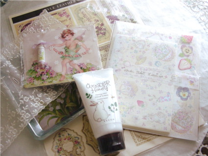 オーガンジー素材の素敵なレースに可愛いハンドクリーム、