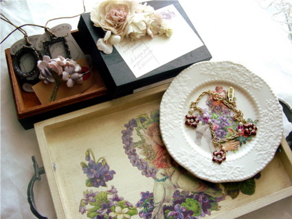 ソープデイッシュ&トレーもスミレのクロモスで制作していらして