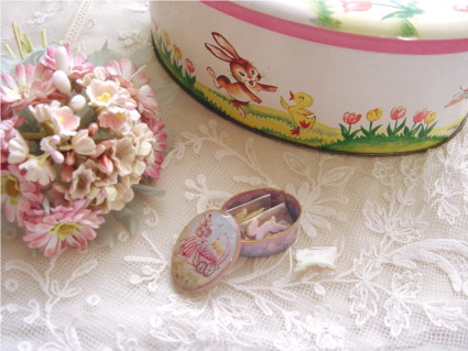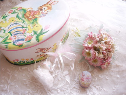 イースター柄の可愛いアンティークのトフィー缶セットです♪