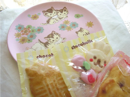 可愛いにゃんこのプレートとこれまた可愛いお菓子のセットです♪