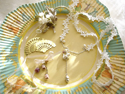 スズランの布花とファンのパーツです。ネグリンのパーツ、ピンク系ですっごく可愛いです!