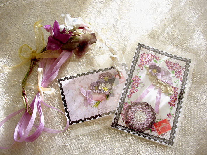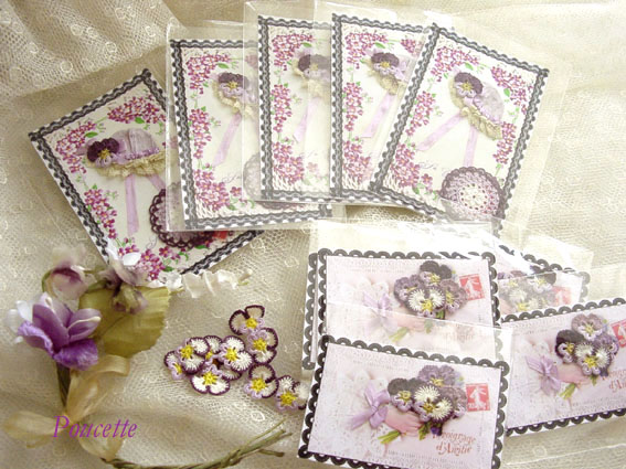 ミニチュアカードの他ミニチュアBOOK、スミレチャーム、レース切手や