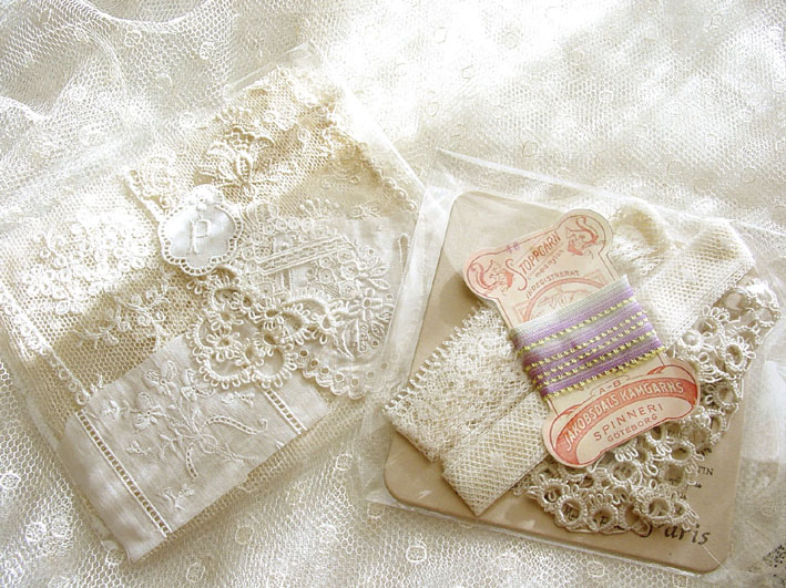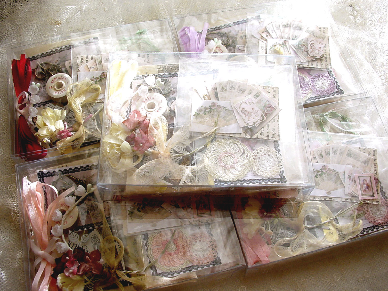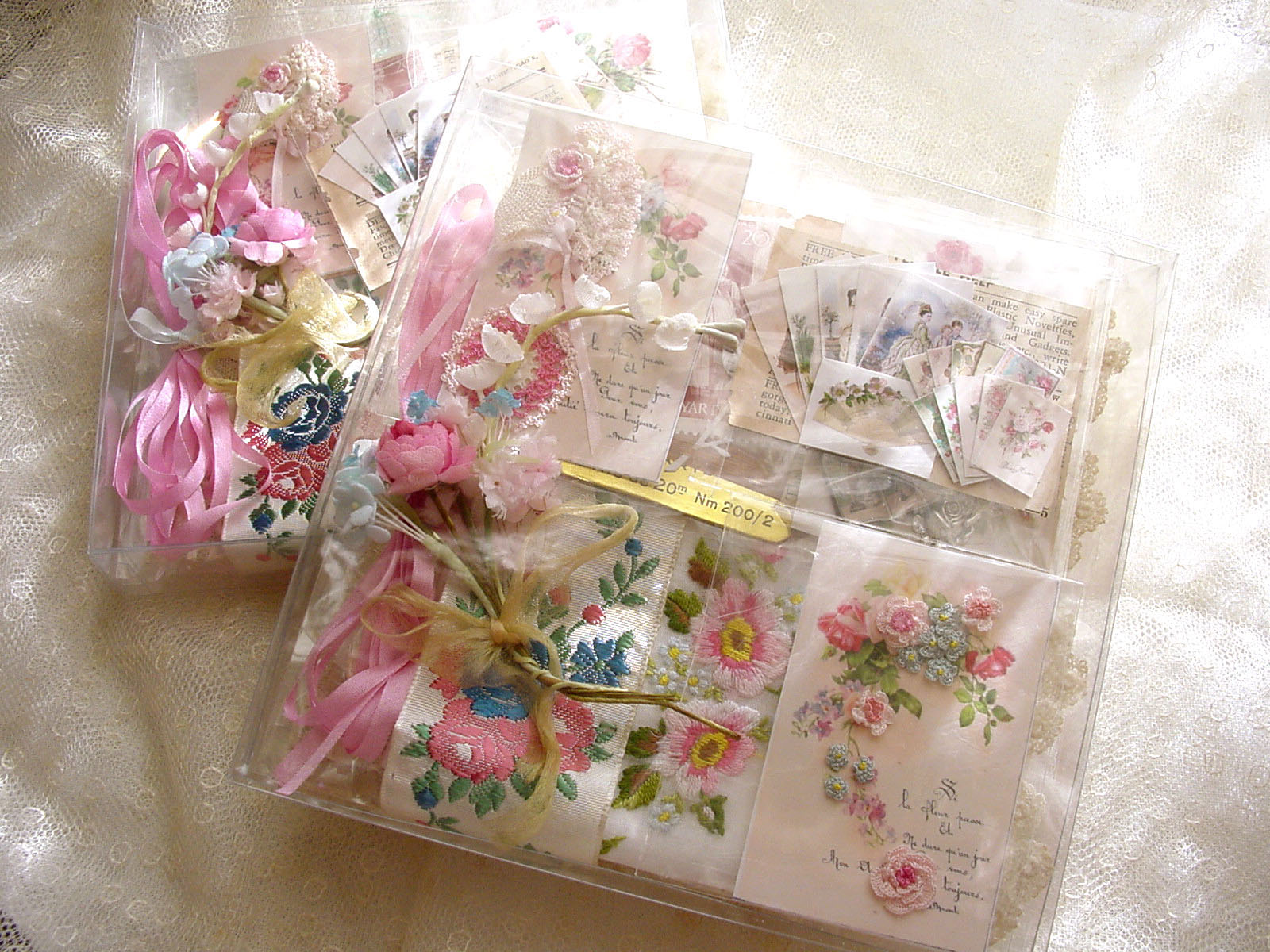 アンティークレース&モチーフセットとアンティークトリムやリボンのセットです。