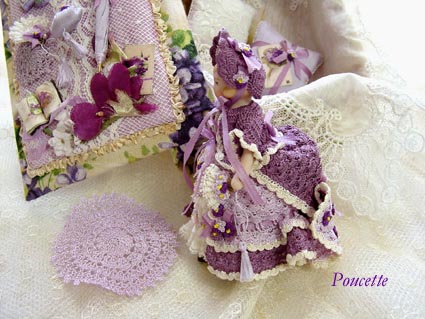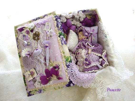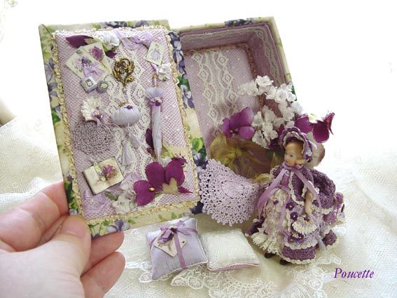 スミレの布箱とスミレのドレスを着せたドール