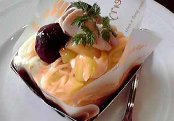 ドライブインでカップに入れて食べる上に