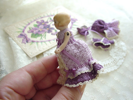 小さいバッスルドレスのお人形を見て
