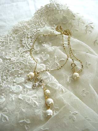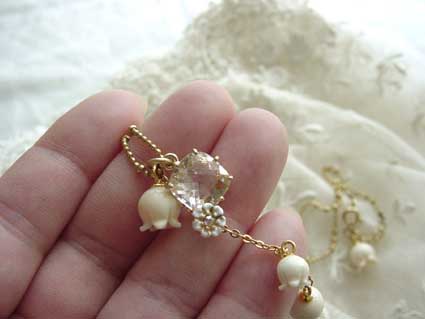 そのペンダントトップに似合うようスズランパーツを組み合わせてネックレスを作りました。