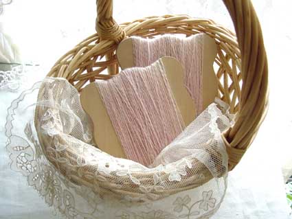 アカツメクサを編もうかと糸をピンクに