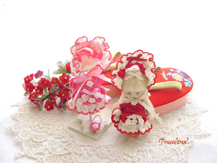 新作の←文化人形ちゃんドレス(赤)と