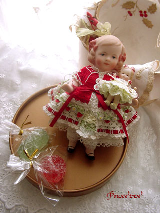 グリーンのドレス、苺の形のプチバックつきなのでした~