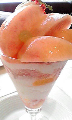 桃のパフェか黄金桃のパフェかピオーネのパフェの