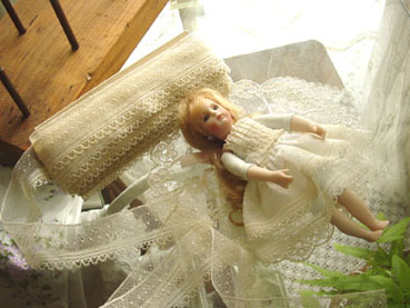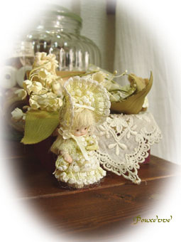 このちっちゃいお人形のドレスにつけます♪