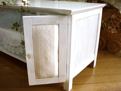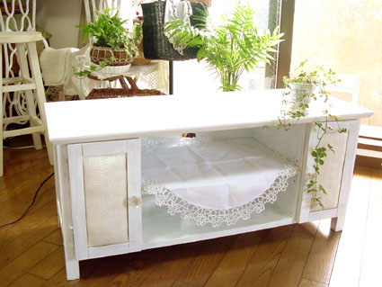 左の古い和風なテレビ台を旦那様がキレイにペイントしてくれました。
