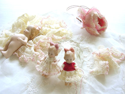 これからミニ薔薇と葉っぱをたくさん編んでドレスの仕上げです。