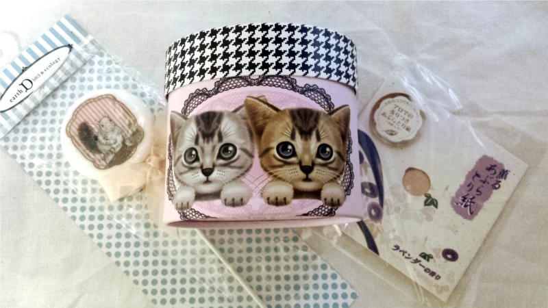 エマさんからは猫ちゃんBOXのお菓子とあぶら取り紙、