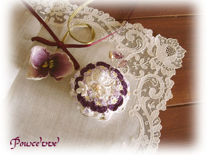 シルクの糸も生成りの2㎜のシルクリボンのカラーに合わせて生成りに染めてます。