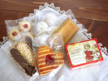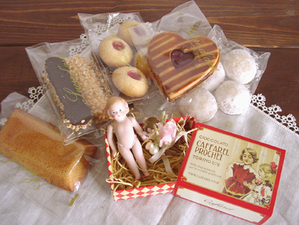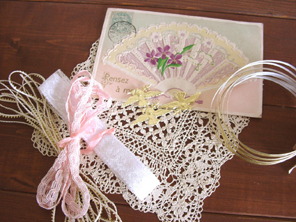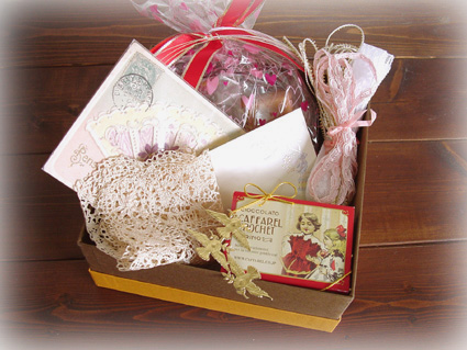 中から出てくる出てくる、お菓子にレースにドイリーにカードetc・・・